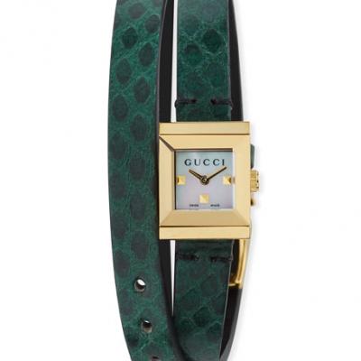 Gucci G-Frame Square Double-Wrap Watch w/ Leather, Green