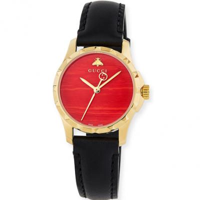 Gucci 27mm Faceted Watch w/ Leather Strap, Red