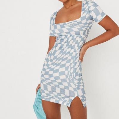 Tall Blue Checkerboard Print Seam Mini Dress Missguided