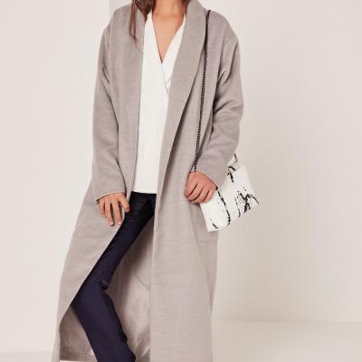 Textured Shawl Collar Maxi Coat Grey - Missguided
