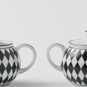 Porcelain milk jug and sugar bowl set - Checkerboard