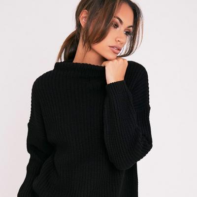 Iffy Black Oversized Cable Knit Dress - PrettyLittleThing
