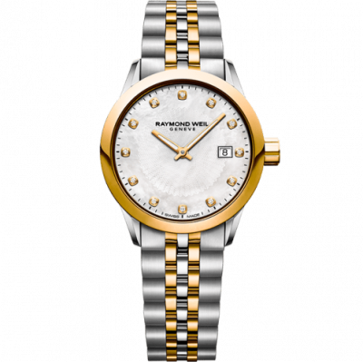 Freelancer Ladies 29mm, Two-Tone Yellow Gold PVD Case and Bracelet, MOP Dial, 12 Diamonds RAYMOND WEIL