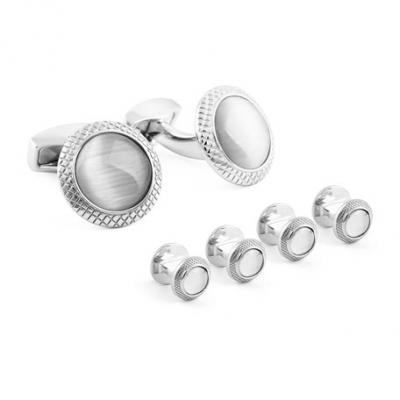 Tateossian Mens Mother-of-Pearl & Silver Cufflinks Set
