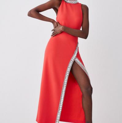 Crystal Embellished Woven Thigh Split Maxi Karen Millen