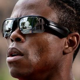 BLUE-ACETATE SUNGLASSES WITH SLENDER METAL TEMPLES