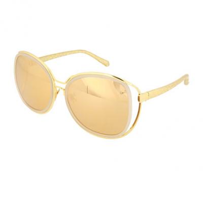 Linda Farrow Open-Inset Mirrored Cat-Eye Sunglasses, White Gold