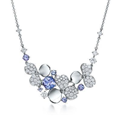 Tiffany Paper Flowers™ diamond and tanzanite cluster necklace in platinum. Tiffany & Co.