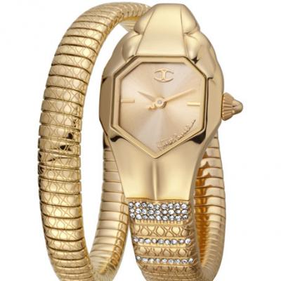 Just Cavalli 22mm Glam Snake Watch with Coil Bracelet, Gold