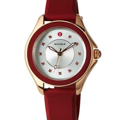 MICHELE 40mm Cape Watch with Silicone Strap, Red