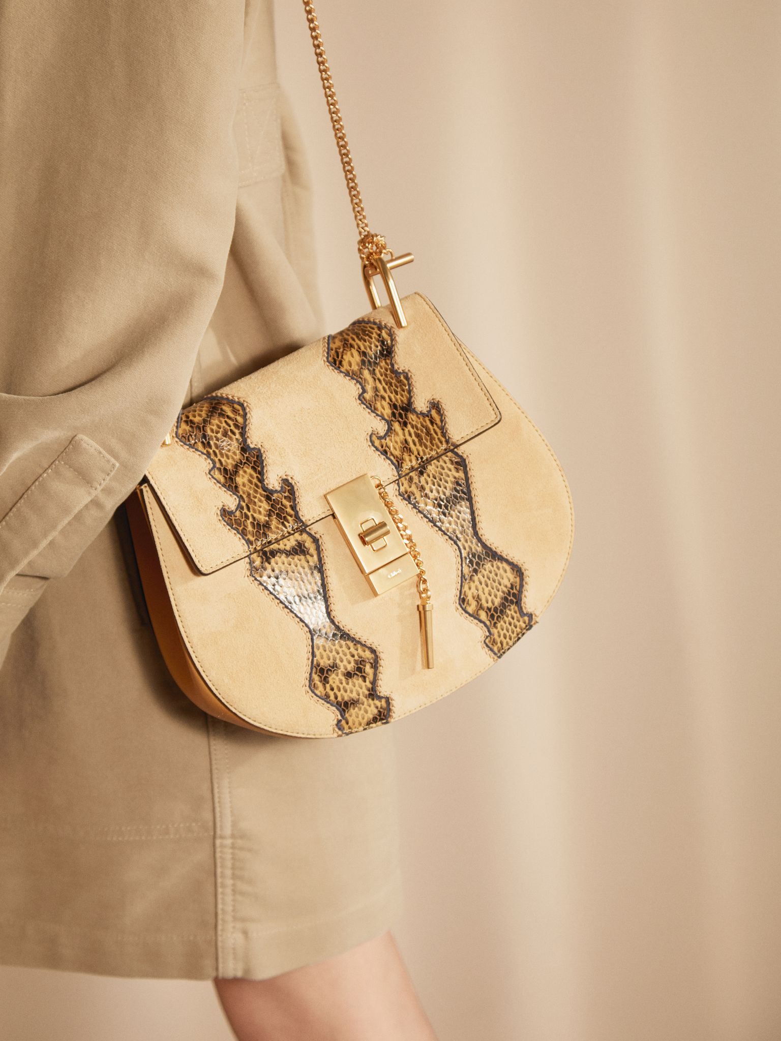 Chloe - DREW SHOULDER BAG - Drew suede & calfskin saddle bag with watersnake gaucho motif