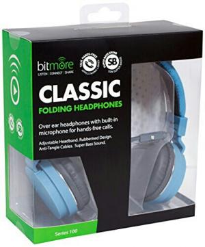 Bitmore Classic Over-Ear Headphone with In Line Microphone and Detachable Cable - Blue