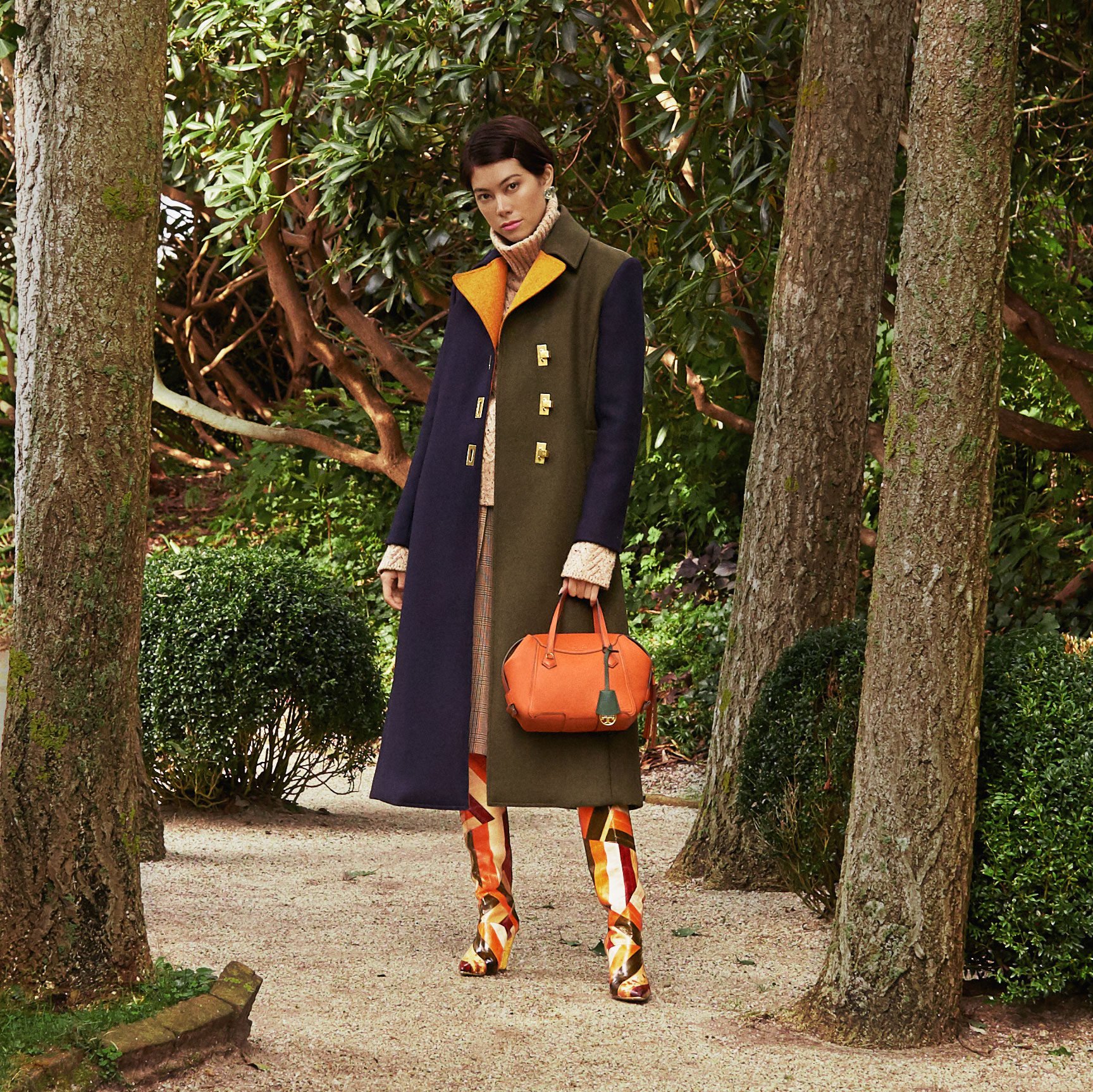 COLOR-BLOCK WOOL COAT - Color Tory Navy Multi