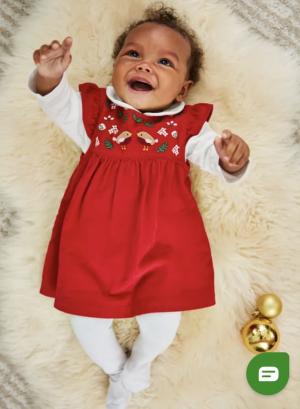 2-PIECE RED ROBIN CORD BABY DRESS & BODYSUIT SET