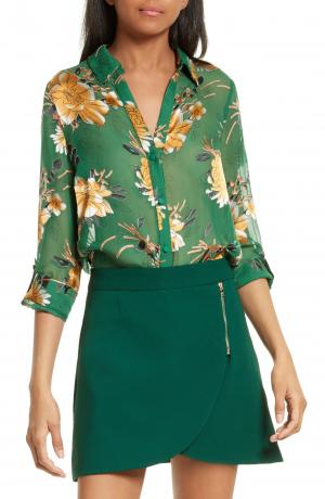 Alice + Olivia Eloise Roll Sleeve Floral Blouse