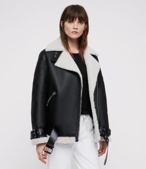 ALLSAINTS UK: Womens Hawley Oversized Shearling Biker Jacket (black)