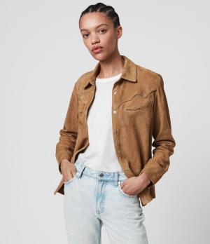 ALLSAINTS UK: Womens Oakley Suede Shirt (tan_brown)