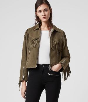 ALLSAINTS UK: Womens Vivi Suede Tassel Jacket (olive_green)