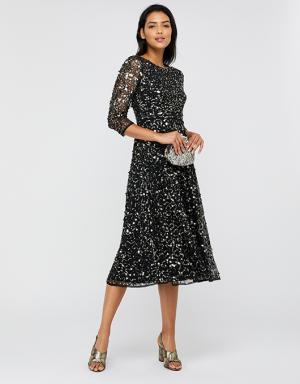 Amber Heart Sequin-Embellished Midi Dress Black 8 7418710108 Monsoon