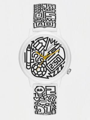 ANALOGUE WATCH GRAFFITI PRINT GUESS