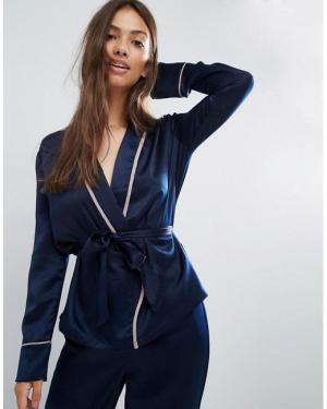 Asos Premium Satin Piped Pyjama Kimono Pyjama Top in Blue Lyst