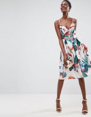 ASOS Tropical Ruffle Back Midi Prom Dress