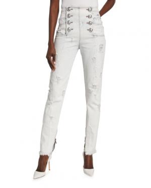 Balmain Bleached Cracked Denim 8-Button Jeans