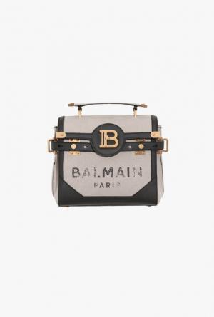 Beige And Black Canvas B Buzz 23 Bag With Faded Balmain Logo for Women - Balmain