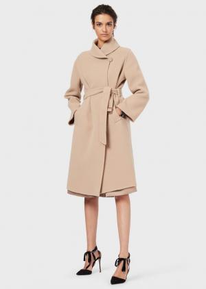 A belted coat in double fabric Woman Giorgio Armani