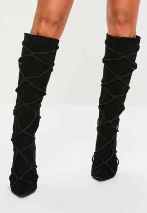 Black Criss Cross Rope Detail Boots Missguided
