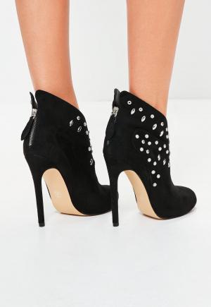 Black Faux Suede Studded Wing Back Ankle Boots Missguided