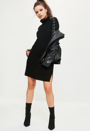 Black Ring Detail Roll Neck Mini Jumper Dress - Missguided