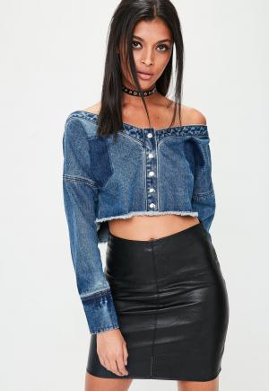 Blue Off The Shoulder Denim Shirt Missguided
