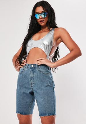 Blue Stonewash Raw Hem Denim Boyfriend Shorts Missguided