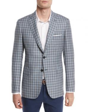 Brioni Check Plaid Two-Button Sport Coat, Light Gray/Blue