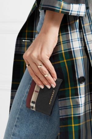 Burberry Textured-leather and checked coated-canvas cardholder
