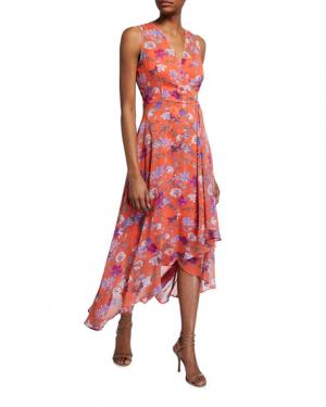 CALVIN KLEIN Floral-Print Faux-Wrap Dress