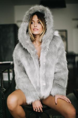 Caroline Receveur Grey Hooded Faux Fur Coat Missguided