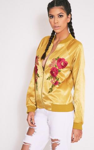 Challah Chartreuse Satin Applique Bomber Jacket - PrettylittleThing