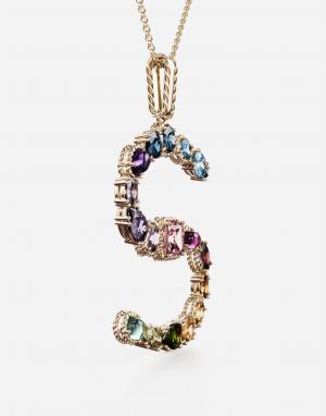 Collection - RAINBOW ALPHABET S PENDANT IN YELLOW GOLD WITH MULTICOLOR FINE GEMS