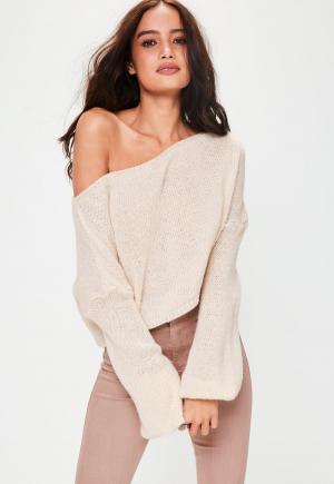Cream Off Shoulder Balloon Sleeve Cropped Sweater Missguided