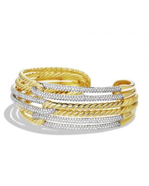 David Yurman Labyrinth Triple-Loop Cuff with Diamonds in Gold