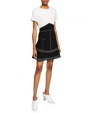Derek Lam 10 Crosby Two-Tone Short-Sleeve Tiered Dress