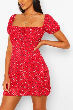 Ditsy Floral Rouched Bust Skater Dress Boohoo