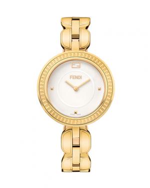 Fendi 36mm Fendi My Way Watch w/Removable Fur Glamy, Yellow Gold