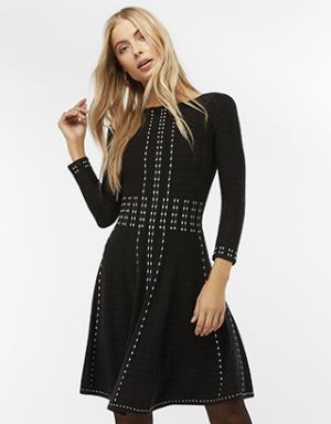 Freja Placed Pattern Fit & Flare Knit Dress Black - Monsoon