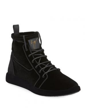 Giuseppe Zanotti Mens Stretch Velvet High-Top Sneakers