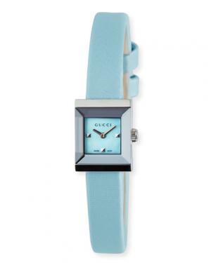 Gucci G-Frame Square Watch w/ Satin Strap, Blue