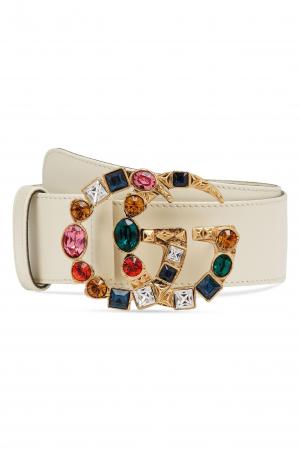 Gucci GG Marmont Crystal Buckle Leather Belt