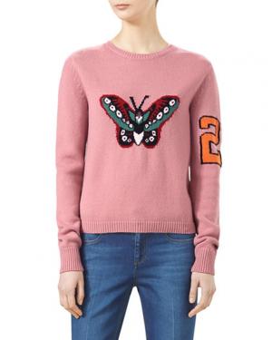 Gucci Intarsia Merino Wool Knit Top, Blush/Multicolor